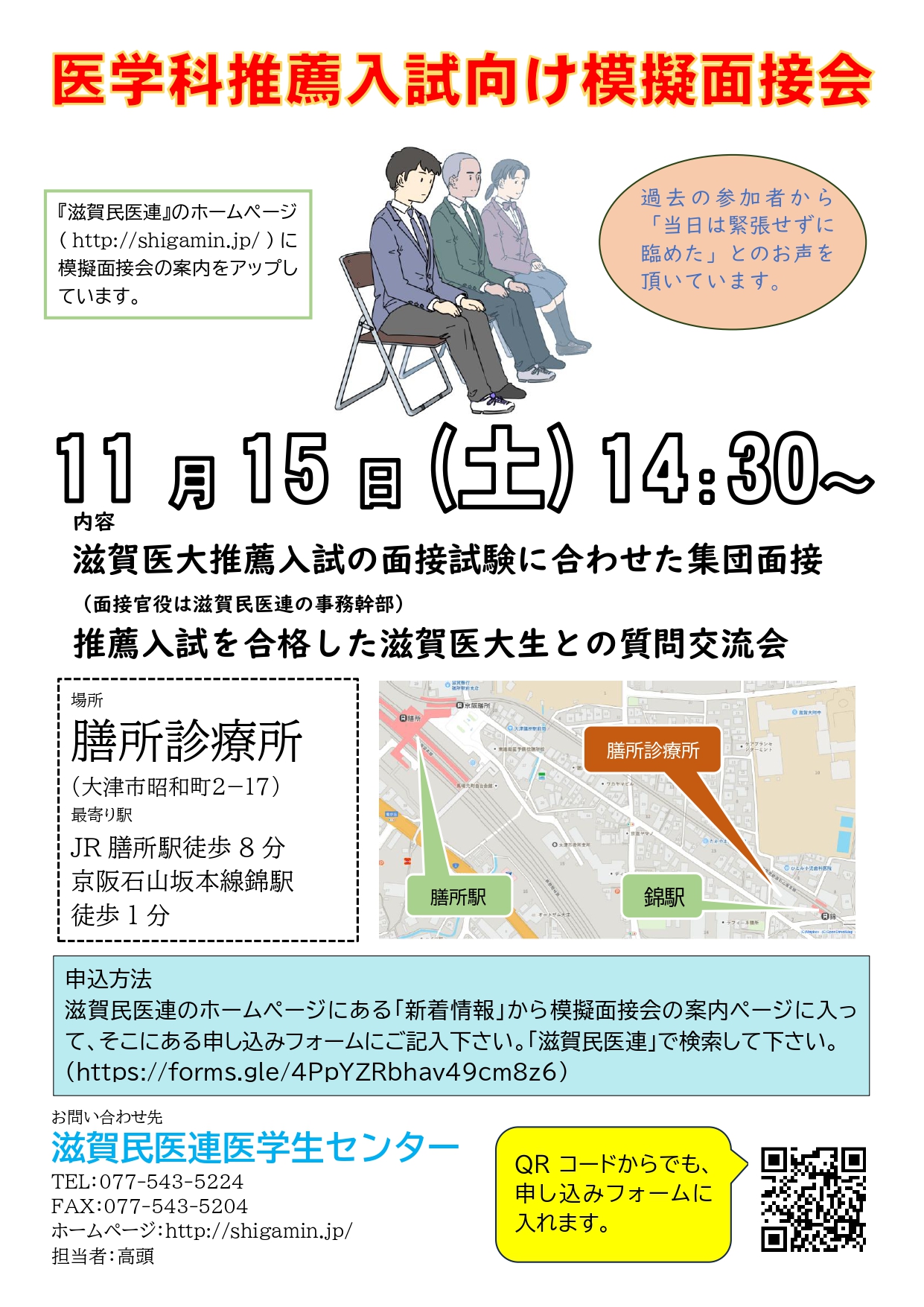 【滋賀】11/15(土)14:30~医学科推薦入試向け模擬面接会開催します