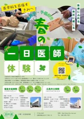 【広島民医連】高校生・予備校生 春の1日医師体験ご案内~病院ver~